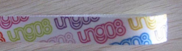 - Nahtbereich 2 cm beachten (die Naht vom Annähen von Schlüsselring oder Haken läuft ca. 2 cm neben diesen quer zum Lanyard in der Fadenfarbe ähnlich Hintergrund; dieser Bereich sollte idealerweise nur einfarbig ohne Motiv sein)