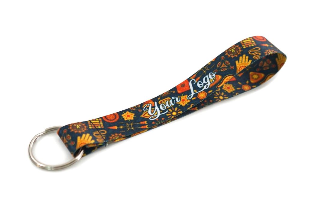 - Länge des Bandes (ohne Schlüsselring): ca. 24 cm (Endformat, also zu Schlaufe gefaltet und vernäht dann ca. 12 cm)