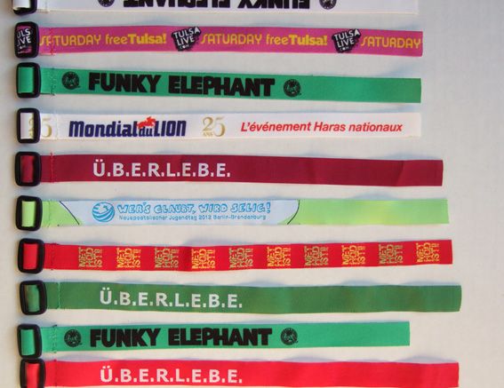 Diese Festivalbändchen sind mit einem wiederverschließbaren Verschluss ausgestattet. Die Stoffarmbänder können somit jederzeit angelegt oder wieder ausgezogen werden. Hier gibt es mehrere unterschiedliche Verschluss-Varianten.